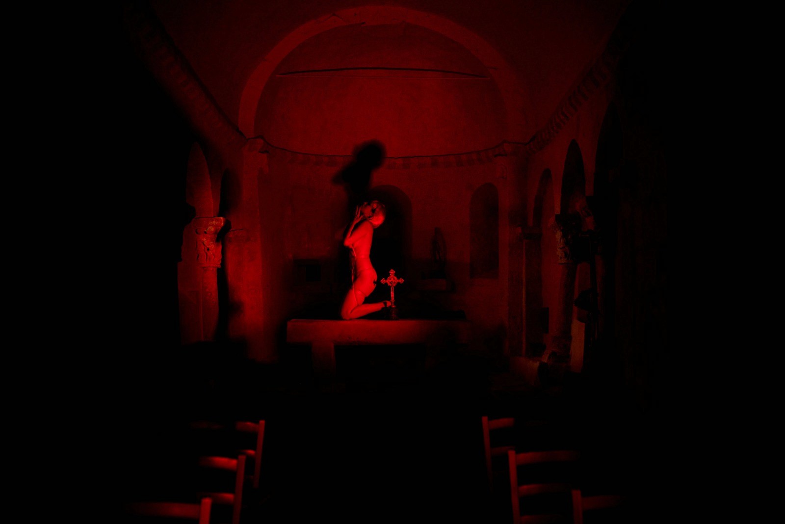 Through this series, I revisit the archetype of the whore and play with the symbol of moral transgression, and in choosing the location of a church I reclaim Eros as a spiritual energy an act of communion and creation. The whore is a complex figure that reveals the tensions between power and vulnerability, desire and judgment, eros and ethics. It is an invitation to look more deeply at how we relate to sexuality — within ourselves, in our relationships, and in the cultural narratives that shape our lives.